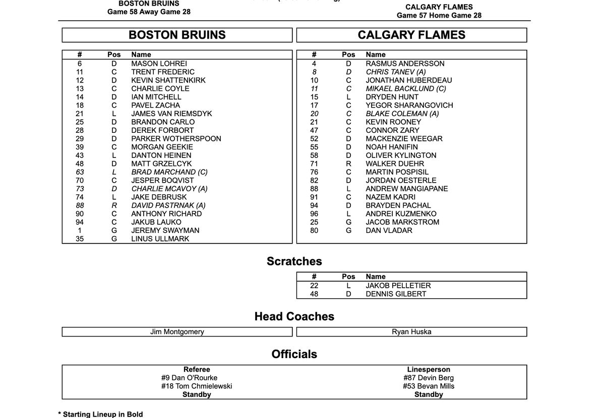 WHO: Bruins (34-12-11) at Flames (26-25-5)