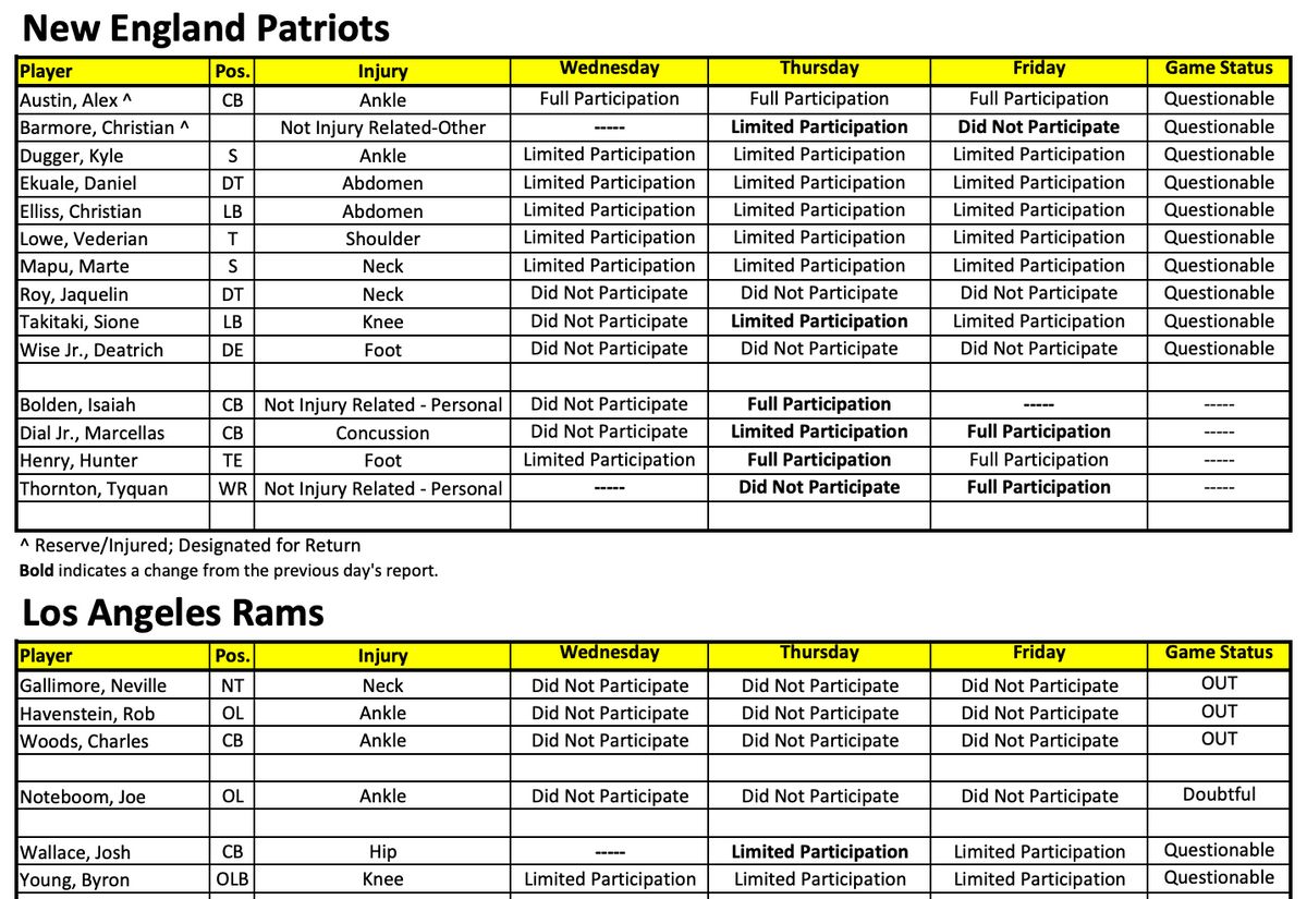 INJURY REPORT