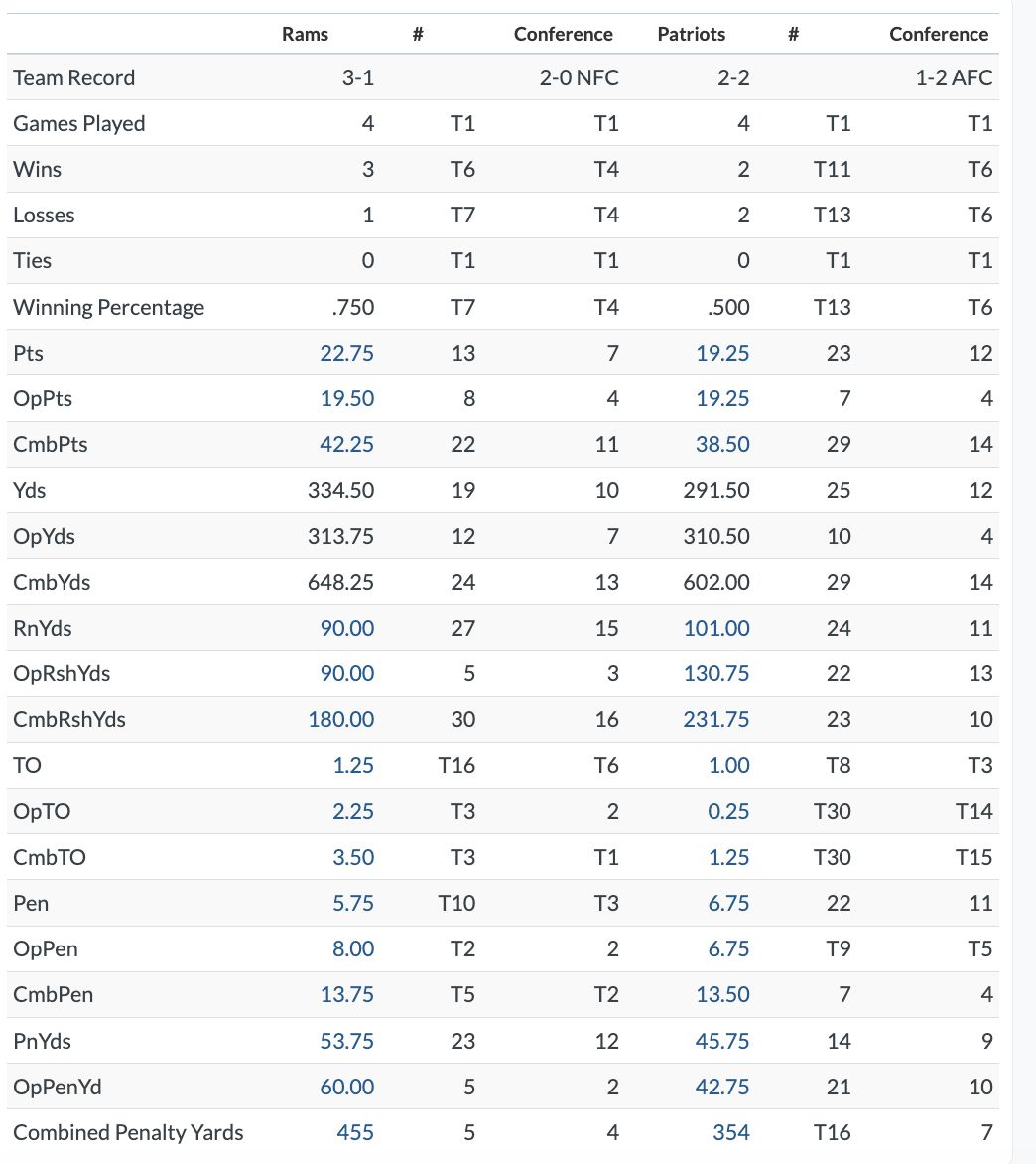 Online: Live Box | Patriots media notes | Rams media notes | Flipcard