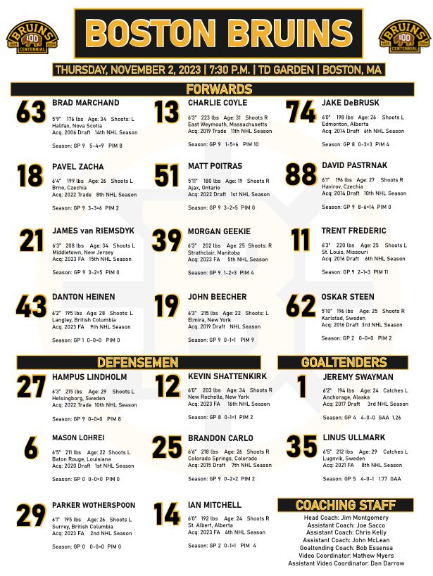 — Boston Bruins (@NHLBruins) November 3, 2023