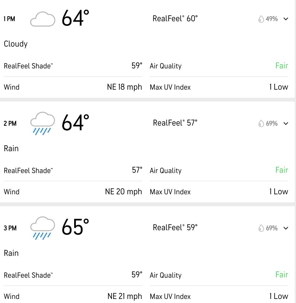 AccuWeather forecast: Not great, but not horrible. Rain and windy will be an issue, but not steadily.