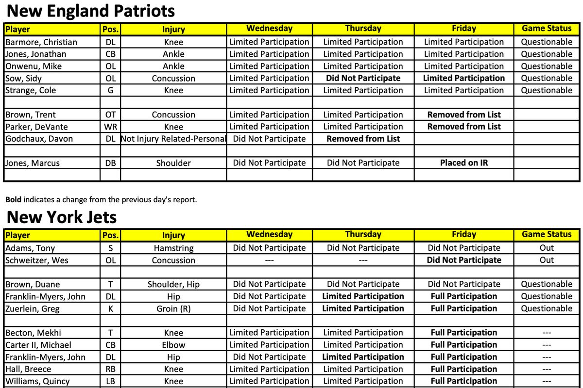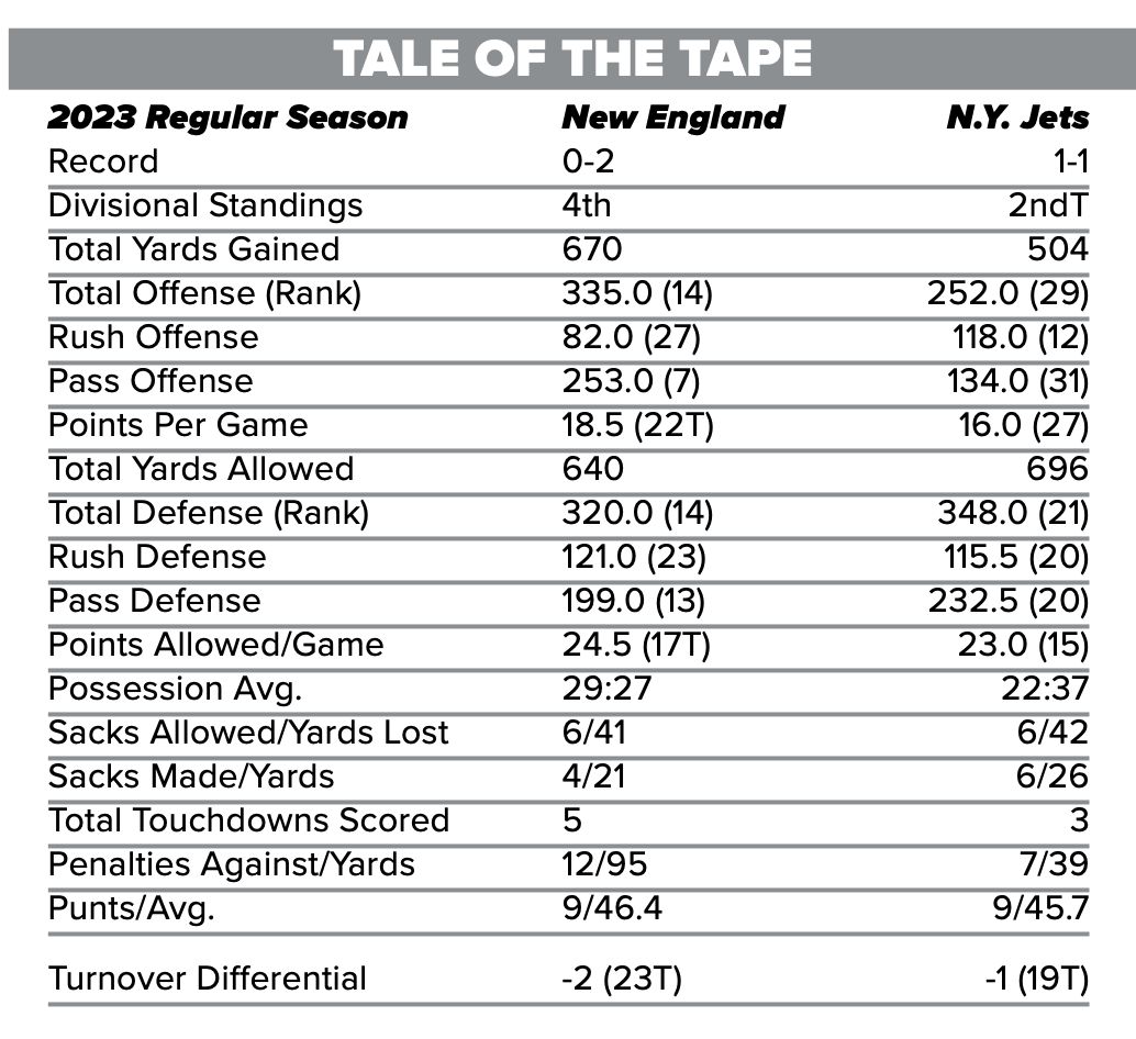 Regular season Game #3: Patriots (0-1) at New York Jets (1-1), 1 p.m.