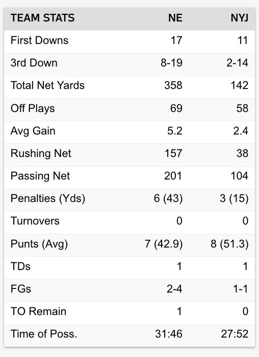 Patriots beat the Jets for the 15th straight time, and it was a slog as predicted.