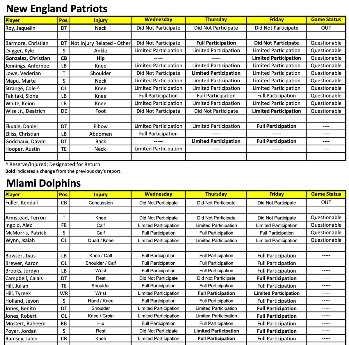 INJURY REPORT