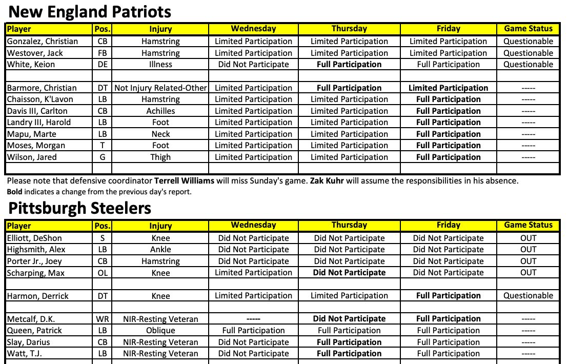 Online: Live Box | Patriots media notes | Steelers media notes | Flipcard